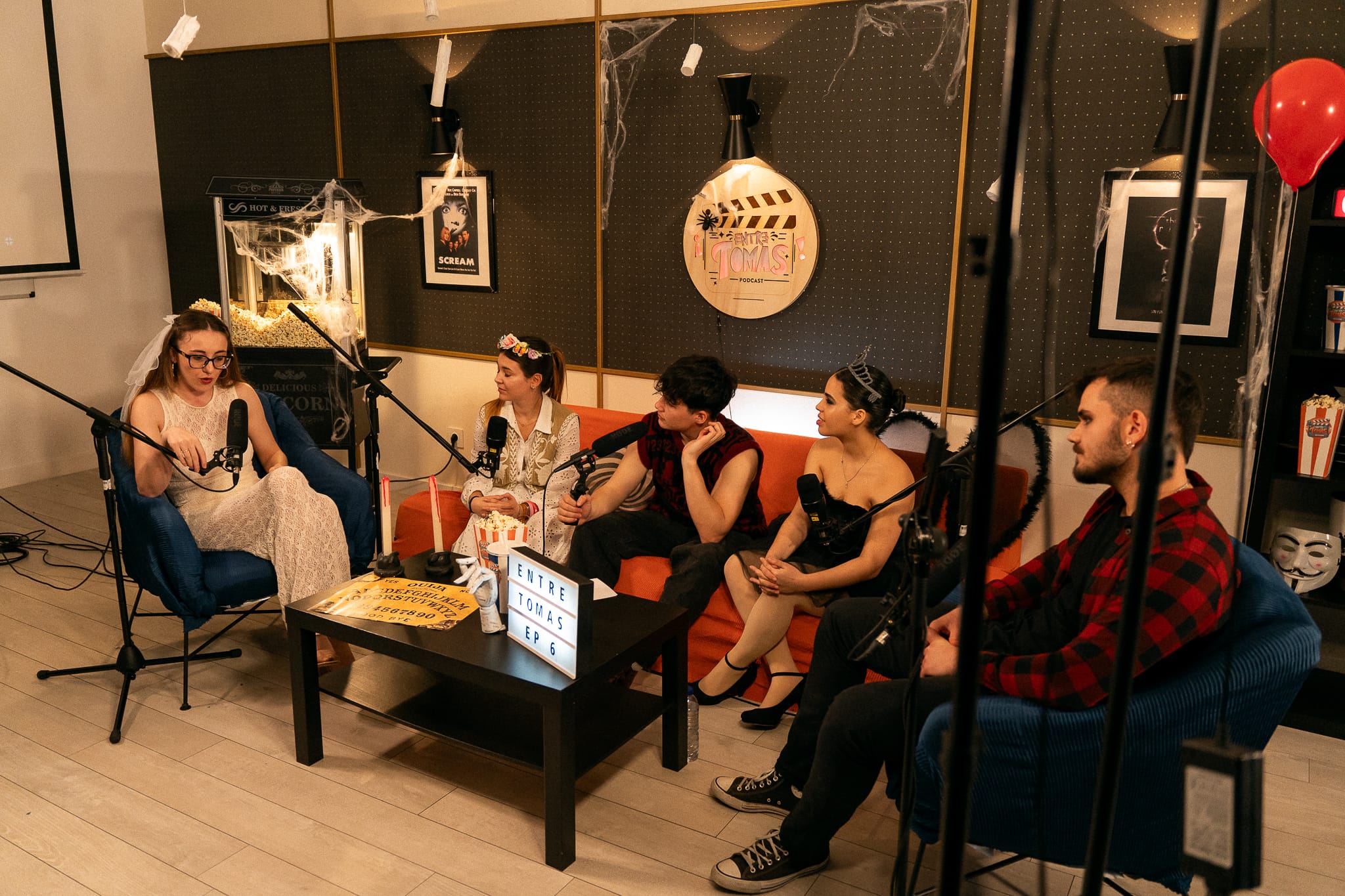 Entre Tomas is a 9-episode audiovisual podcast built around conversations about cinema and the impact films have on audiences. The original concept aimed to move beyond surface-level reactions, encouraging structured discussions about narrative intention, thematic depth, and the creative decisions behind each film. While the dynamic ultimately evolved into a more spontaneous and conversational format, the series developed into a themed, visually immersive experience where each episode featured distinct set design elements and wardrobe choices to match its topic, elevating it beyond a traditional audio podcast.